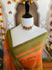 Vegan Silk Saree | No Zari | No Blouse | Handwoven | Sky Blue Green & Red | Ships from California