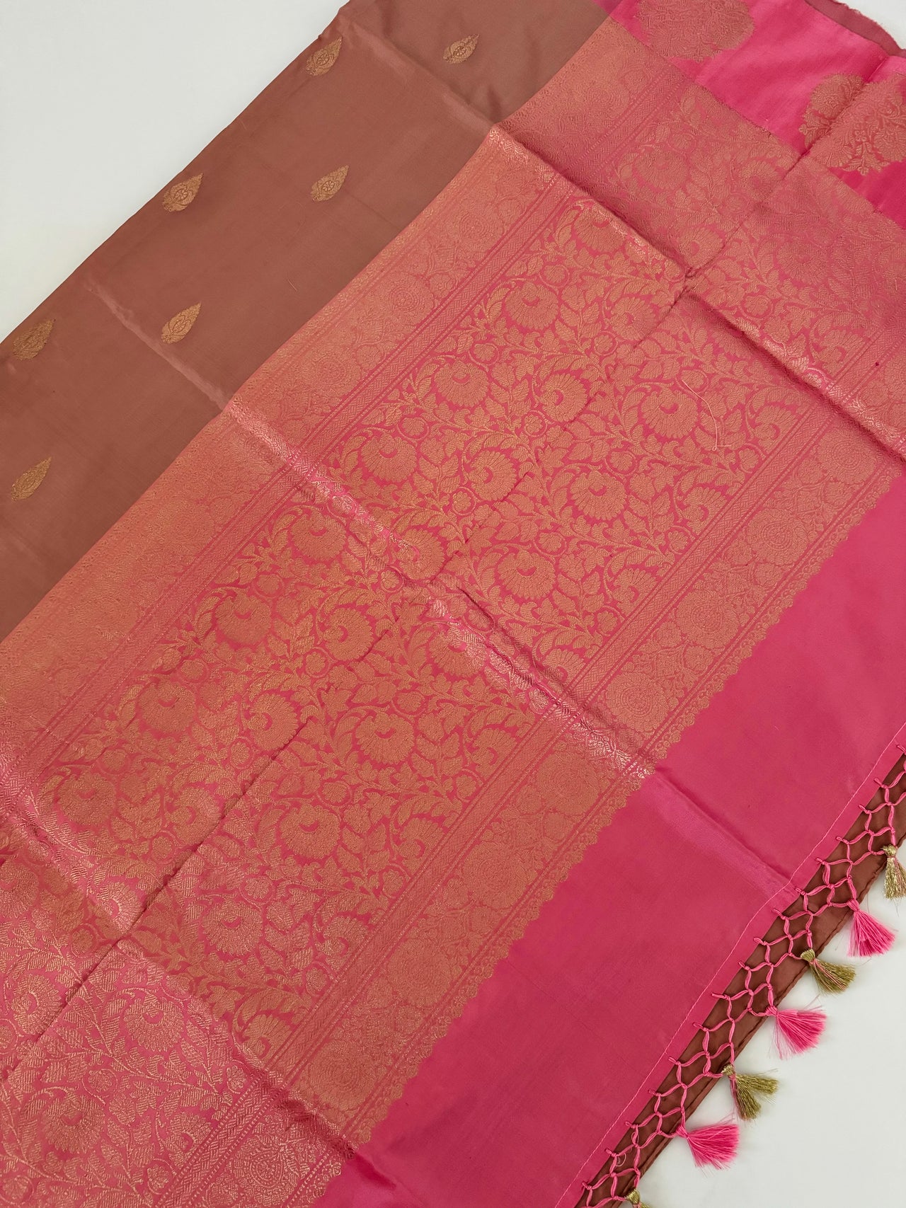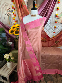 Banarasi Katan Pure Silk Saree | Pale Dusty Rose | Gold Zari | Handwoven | Silk Mark Certified | Ships from California