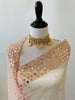 Handmade Premium Beaded Net Saree | Off White | Hand Embroidery | Ships from California