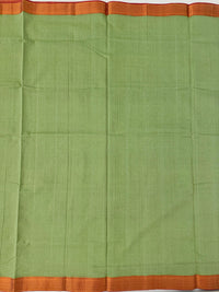 Lightweight handwoven cotton saree in light green yellow color with classic mangalgiri gold zari border. Body of the saree is solid light green yellow with gold zari border. Blouse color is same as the body with the same border design as the saree.