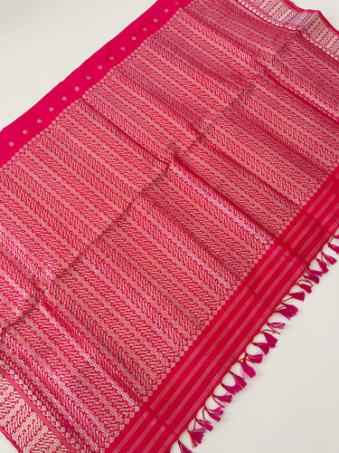 Assam Pat Mulberry Silk Saree | Bright Pink | Silver Zari | Handwoven | Silk Mark Certified | Ships from California
