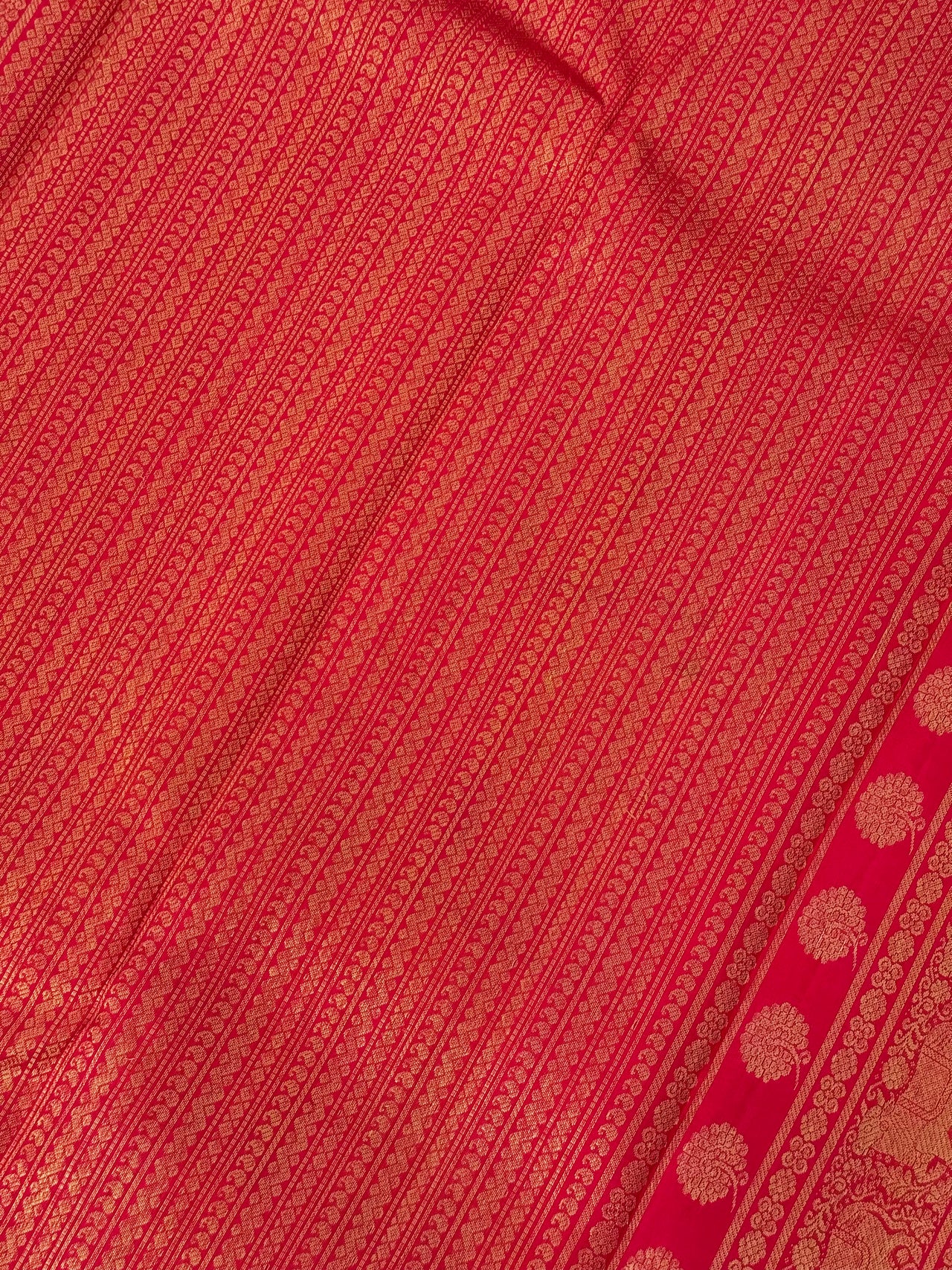 Labor-Intensive Process: Korvai weaving is highly labor-intensive and requires skilled artisans. The process involves precise and intricate handwork to ensure that the transition between the body and the border is smooth and aligned.