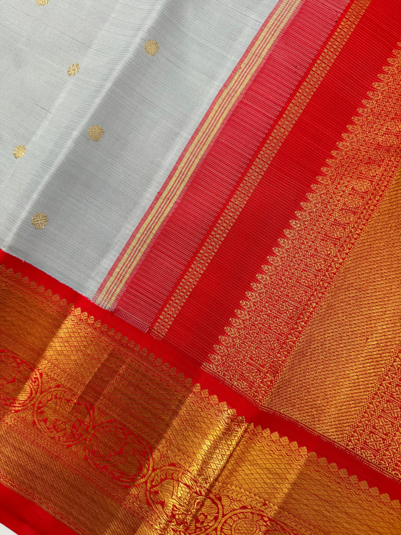 Exclusive Kanchivaram Korvai Pure Silk Pure Zari Silk Saree | Light Steel Blue | Gold Zari | Handwoven | Ships from California