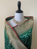 Maheshwari Cotton Silk Saree | Handloom Mark | Green & Maroon | Ships from California